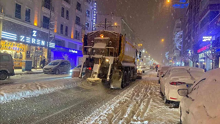 Gece boyu küreme, tuzlama ve kar toplama çalışmaları yürüten ekipler, bir yandan da ana caddelerin kaldırımlarını temizledi.