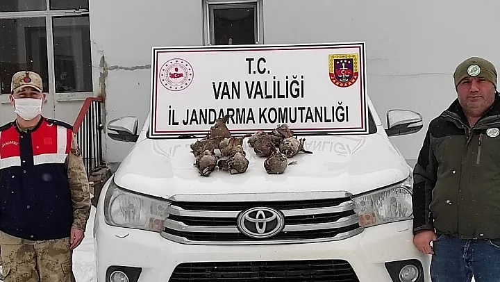 Van'ın Başkale ilçesinde yasadışı avlanma yaptığı tespit edilen 1 kişi avladığı 10 ölü Kınalı keklik ile birlikte jandarmaya takıldı.