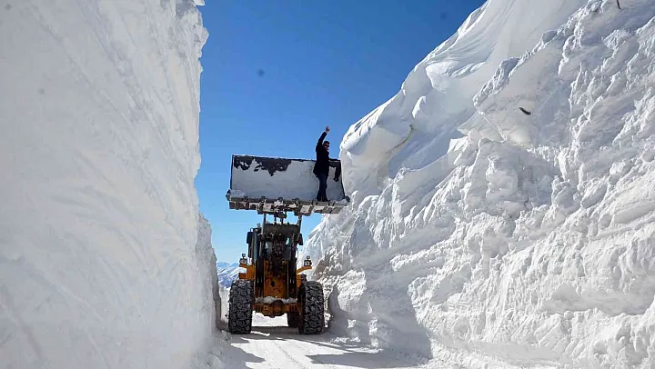 Hakkari'nin Yüksekova ilçesinde 9 metreyi aşan karda yapılan çalışma sonucu açılan yollar tünelleri andırıyor.