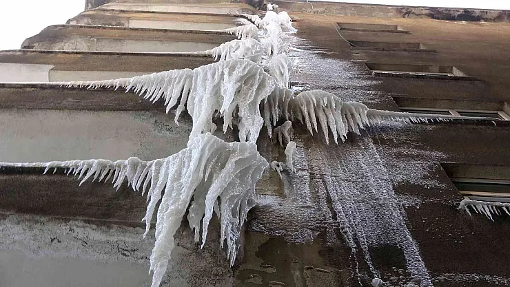 Hakkari'nin Yüksekova ilçesinde hava sıcaklığının eksi 25 dereceyi görmesiyle binaların dış cepheleri buzla kaplandı, çatılardan sarkan buz sarkıtlarının boyu ise 5 metreyi buldu.