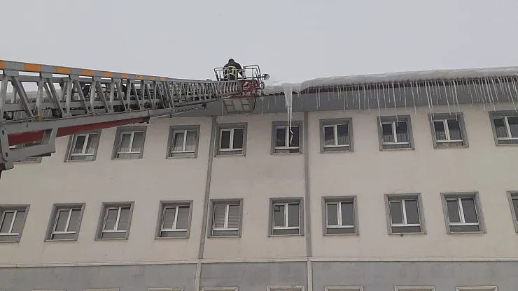 Ağrı Belediyesi İtfaiye Müdürlüğü ekipleri, kent genelinde etkisini artıran soğuk hava nedeniyle bina saçaklarında oluşan buz sarkıtlarına karşı çalışma başlattı. Özellikle yaya güvenliğini tehdit eden noktalar ekipler tarafından tek tek kontrol altına alındı.