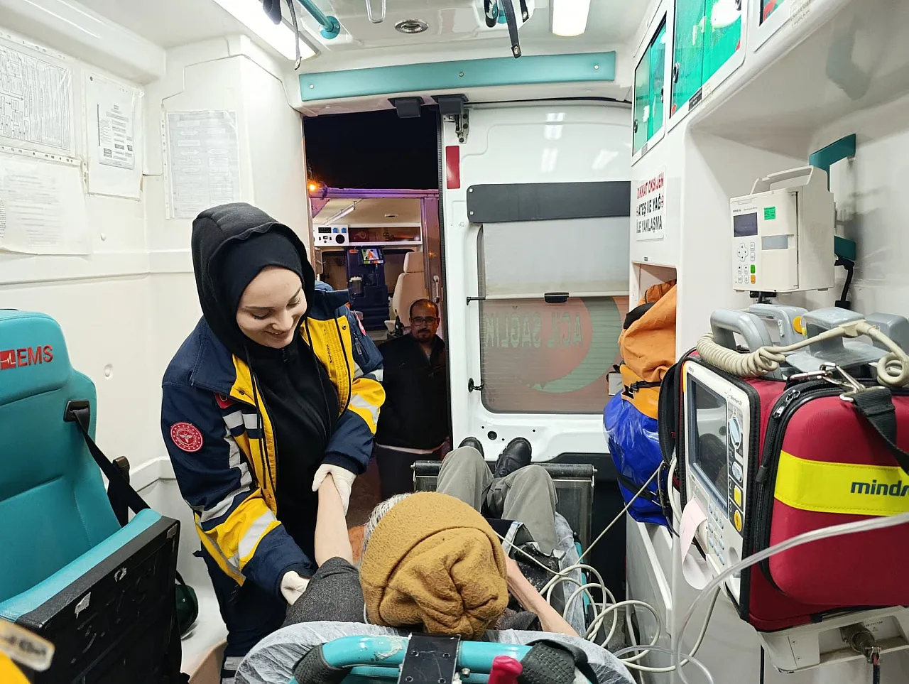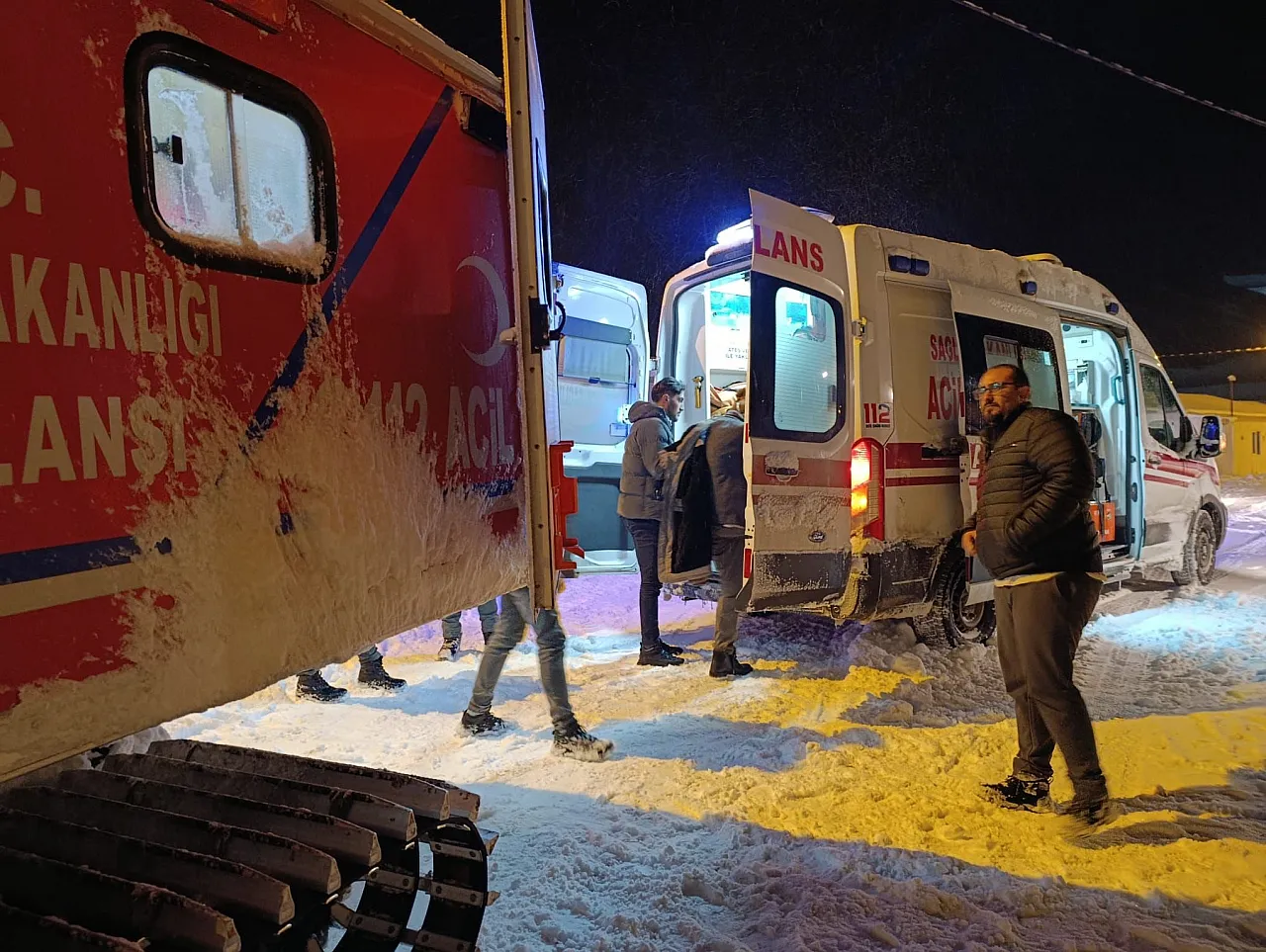 Yoğun kar ve tipiye rağmen Karataş köyüne ulaşan ekipler, rahatsızlanan 61 yaşındaki Menşur Gürses'e ilk müdahaleyi yaptı ve hastayı güvenli şekilde hastaneye sevk etti.