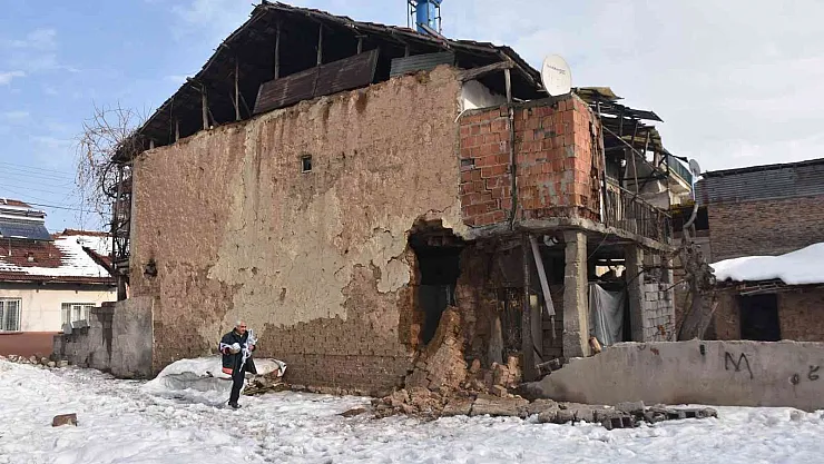 Malatya'da iki katlı kerpiç bir evin duvarı eriyen kar suyu nedeniyle çöktü.