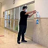 Okulun birçok yerinde dezenfektan noktaları bulundurulurken, özellikle öğrencilerin yoğunluk oluşturabileceği okul ve sınıf giriş noktalarına da 1,5 metrelik sosyal mesafeye uyulması konusunda uyarıcı etiketler yapıştırıldı.