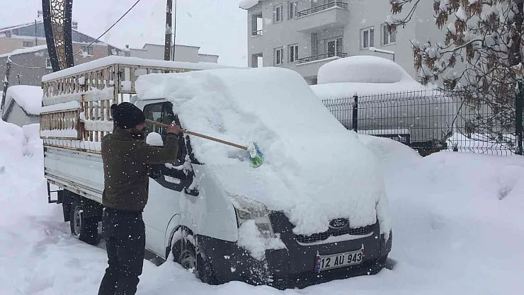 Bingöl'ün yüksek rakımlı Karlıova ilçesinde yaklaşık 2 aydır etkisini sürdüren kar, hayatı olumsuz etkileyeme devam ediyor. Dün gece saatlerinde ilçede yeniden etkisini gösteren kar, nedeniyle araçların birçoğu kara gömüldü. Sabah işyerini açan esnaf kar temizliği yaparken, sürücüler de araçlarının üzerindeki karı attı. O sürücülerden biri olan Ali Bulki, her gün aracının üstündeki karı atmaktan dolayı sitem ederek, "Her gün her gün kar temizliyoruz. Sabah kalkıyoruz kar, ertesi gün kalkıyoruz yine kar" dedi.