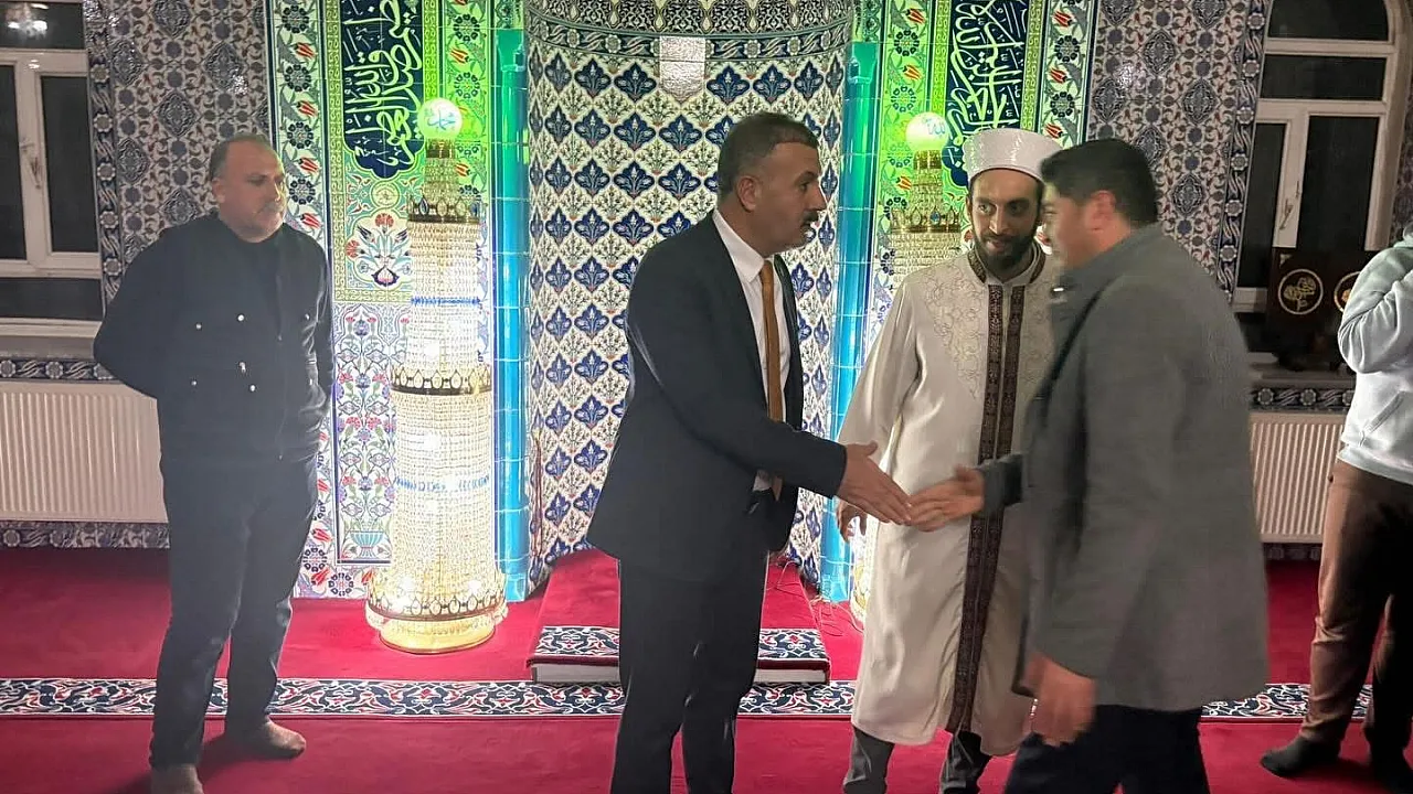 Tutak Belediye Başkanı Fevzi Sayan, kandil gecesinde Tutak Merkez Camii'nde vatandaşlarla birlikte ibadet etti, program sonrası ikramlarda bulunuldu.